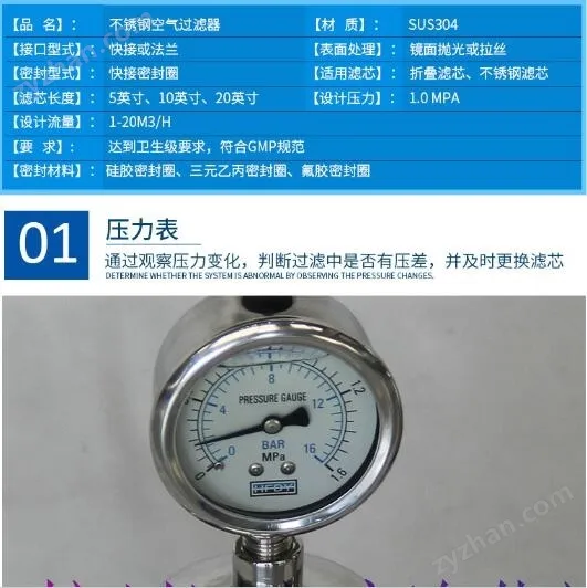 二,不锈钢气体过滤器的技术参数