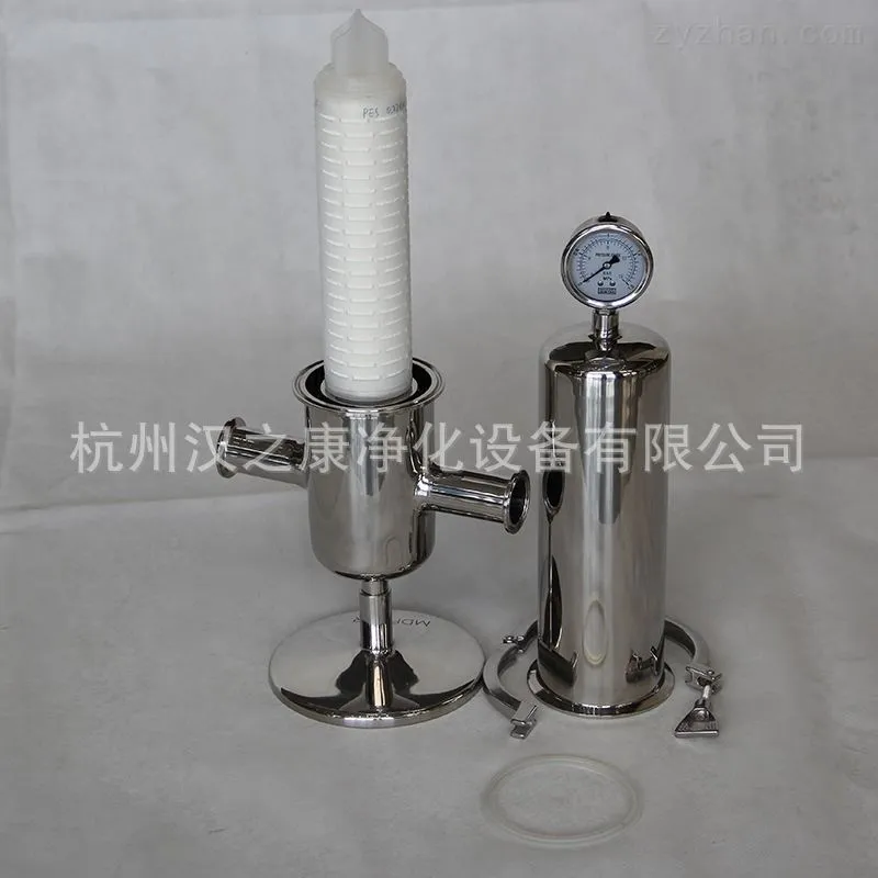 空气过滤器滤芯采用疏水性聚四氟乙烯或聚丙烯折叠式微孔滤膜,进口不锈钢(304,、316L),按GMP标准设计制造。具有有效、节能、安心、可靠等特点,广泛用于发酵空气,空气,惰性气体的净化(可作为总空气过菌器、分过滤器)。是专为制药工业,食品工业的贮罐气体交换时达到消灭细菌之目的设计制造的,同时也可用于消灭细菌蒸汽的过滤。气体过滤精度为0.22um,效率达到99.99%,过滤能力可在0.1-100m3/min范围内选用。介质厚度仅为0.8mm,孔径均匀稳定、气体阻力小、方便。滤芯一般情况下可使用二年。此过滤器可解决空气的染菌问题,而且可提高消毒消灭细菌的质量,从而达到GMP和无菌卫生的要求。